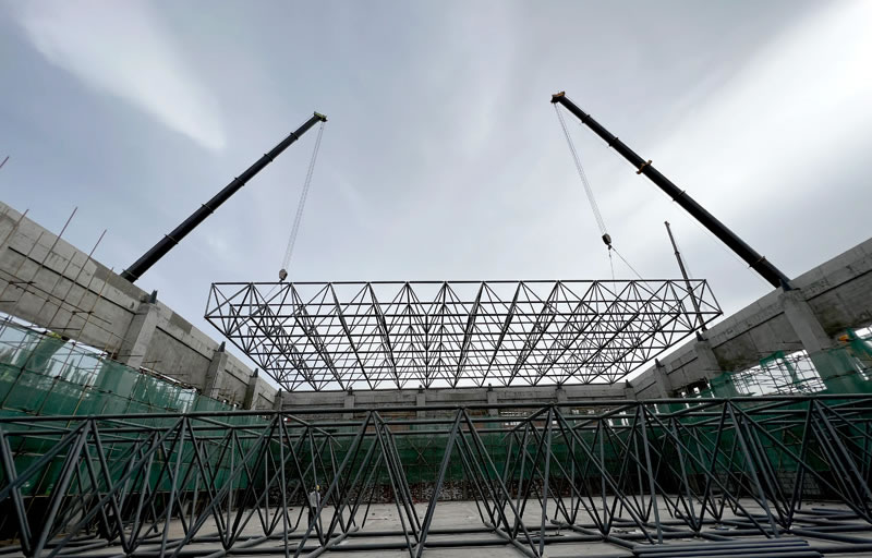 · 核心技術(shù):液壓同步提升技術(shù)。計(jì)算機(jī)系統(tǒng)精確控制每個(gè)點(diǎn)的提升速度和行程,確保網(wǎng)架在上升過程中保持同步,受力均勻,避免結(jié)構(gòu)變形。