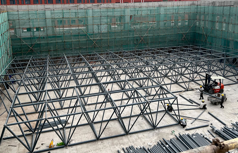· 適用性:適用于跨越現(xiàn)有設(shè)施(如鐵路、廠房)、施工場地狹窄,或需要分段施工的超長網(wǎng)架結(jié)構(gòu)。