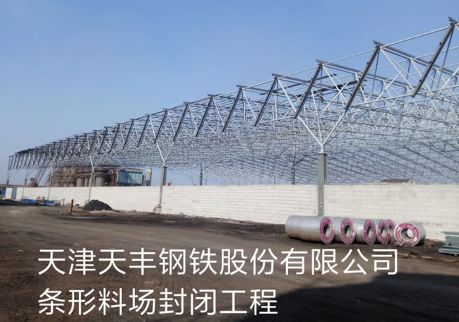 天津天豐鋼鐵股份有限公司條形料場封閉工程具有耐腐蝕,耐高溫,耐潮濕等一系列的優(yōu)勢,并且電廠干煤棚網(wǎng)架抗震性能好電廠干煤棚網(wǎng)架特點(diǎn)1、能夠獲得很大的跨度,中間沒有立柱。
